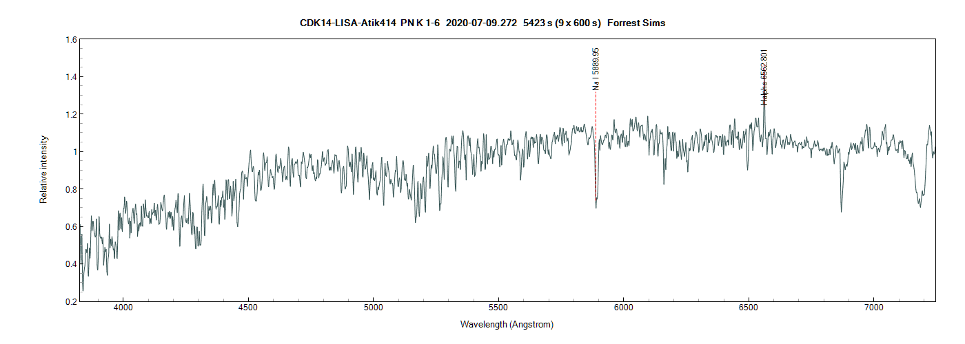 PN K 1-6 - Clearly not a symbiotic star. Halpha line is in small emission, confirmed on two independent observations on two successive night (the spectrum given is the sum of the two night) :