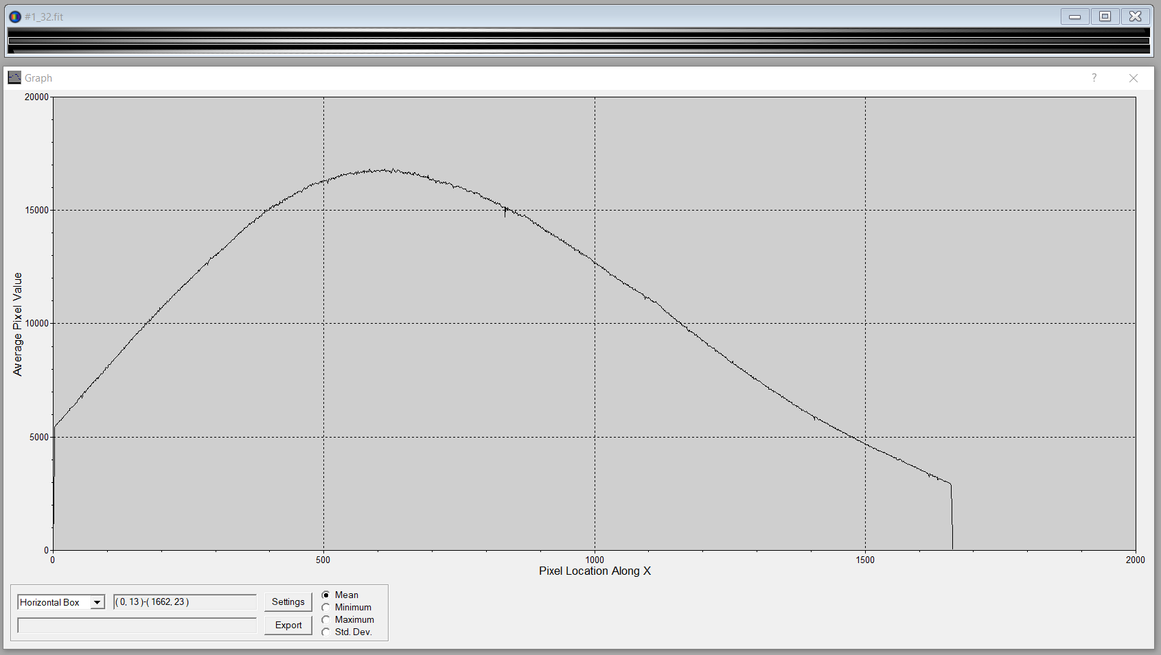 Here is the profile for my flat in order 32. Notice the increased noise near the peak of the blaze, right where you would expect less noise! If I generate a profile in MaximDL from the straightened image of the flat for order 32 it is smooth, as it should be. However, If I narrow the zone over which MaximDL averages then the profile starts to look like it does in ISIS. I believe this shows that Isis is not quite capturing the whole 75um line width. This makes sense as ISIS was designed with a 50um fiber in mind.