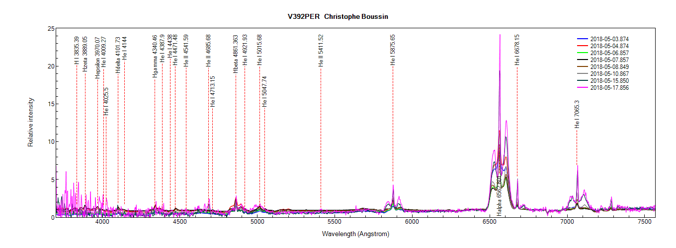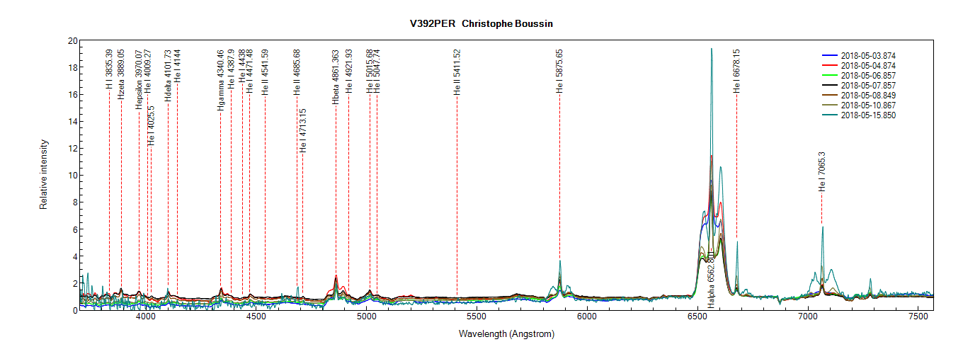 Evolution du spectre de V392 PER du 3 au 15 Mai 2018