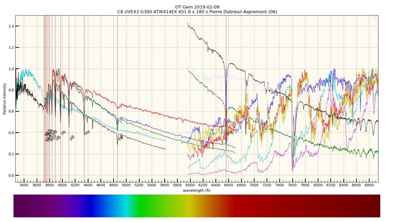 Mon setup soufre donc de déficit UV avec : le verre de la fente , le hublot de la caméra, la sensibilité du CCD en UV, la lame de fermeture du C8.