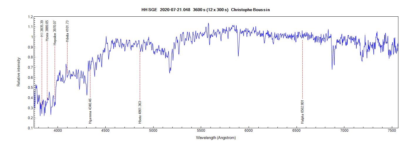 HH Sge on July 21th 2020 (identification of Balmer lines from PlotSpectra)