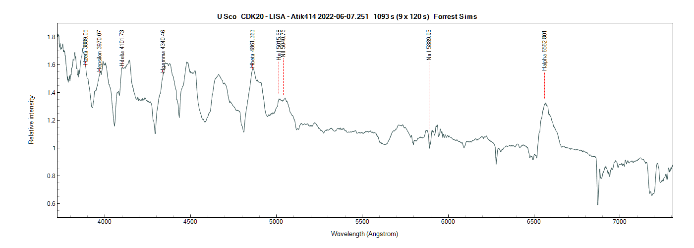 Very fast evolution of U Sco (and a very special spectrum), from Antibes (France), Star'Ex spectrograph on a Celestron 9.25 telescope, the 7.880-06-2022: