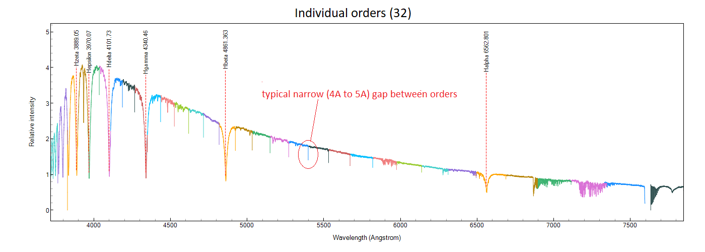 The first problem I've found is that there is a small gap, typically only a few Angstroms, between most orders. See last image below.