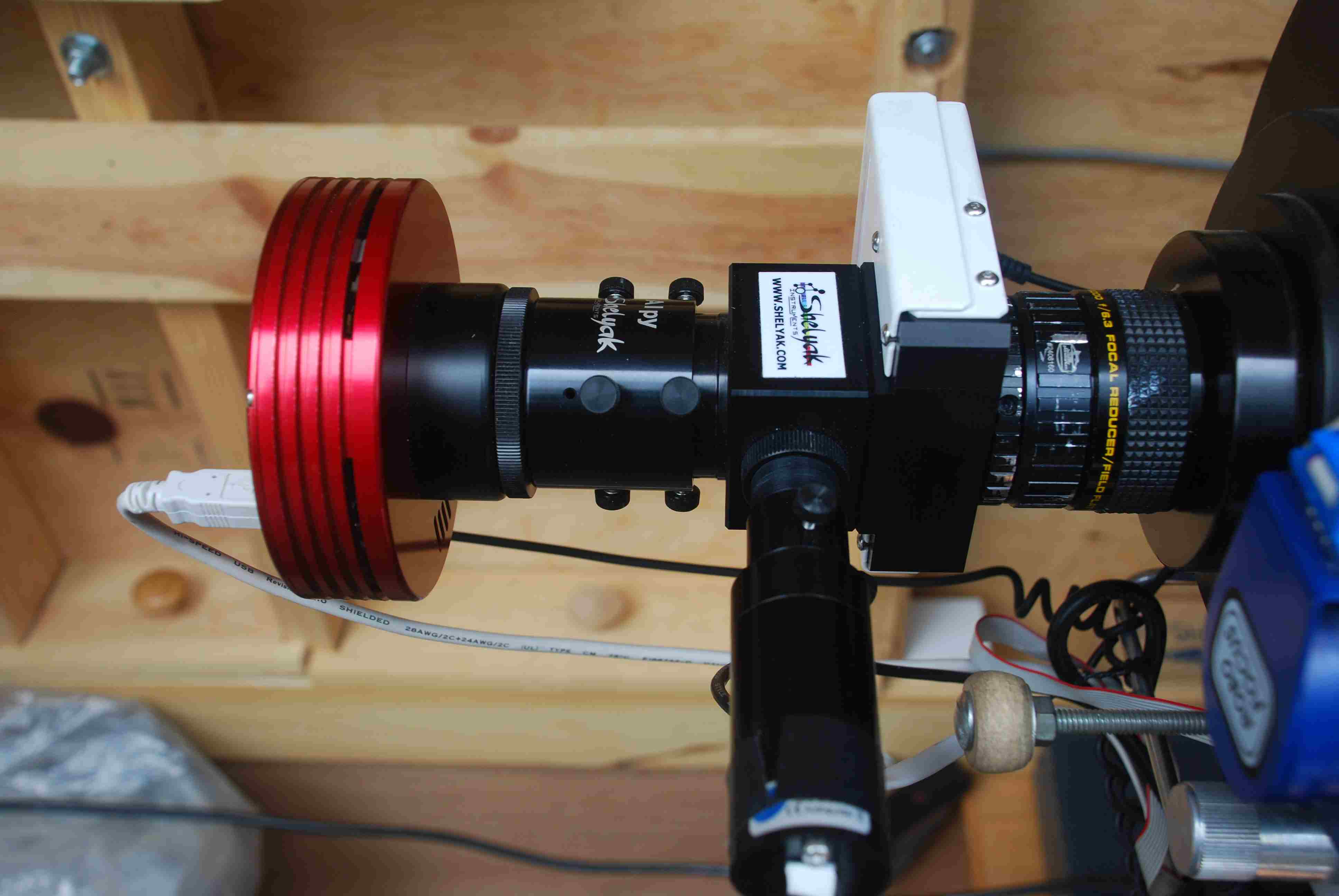 In answer to your questions, the f/6.3 focal reducer is a Meade Series 4000. The distance from the FR lens to the slit is about 85mm. As you can see in the photo, I did not use the Alpy T mount for connection to the scope. I first attached the FR to the scope and attached the ALPY to the FR using the SBIG T thread visual back.