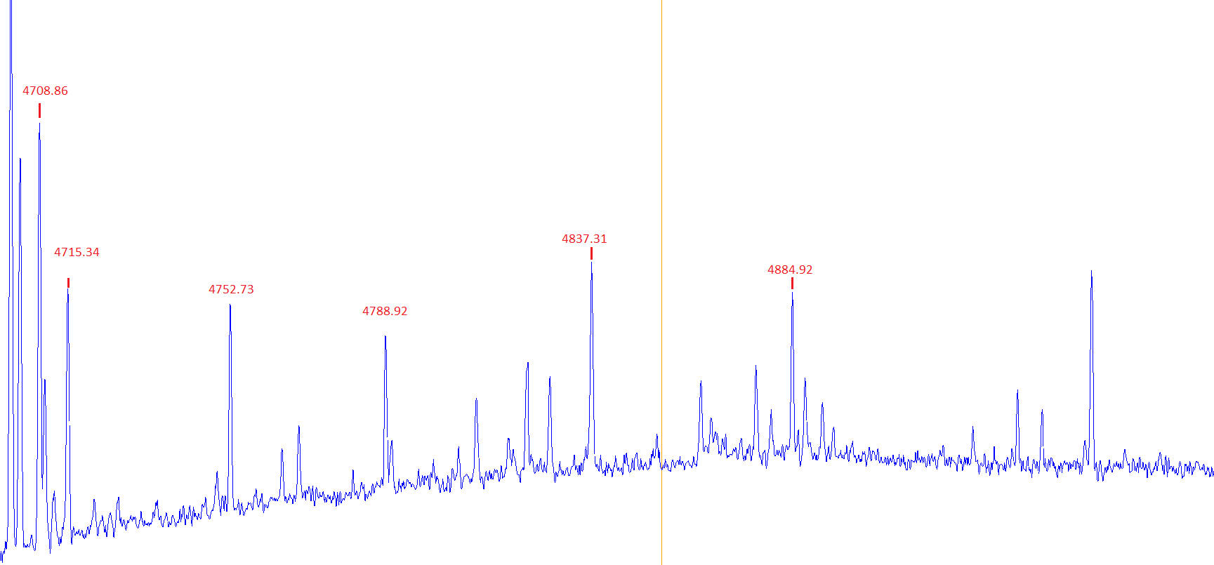 Avec ce polynome, j'ai calibré le spectre de raies du néon, comparé puis rectifié les valeurs selon la base de données de longueurs d'onde du NeI trouvée :