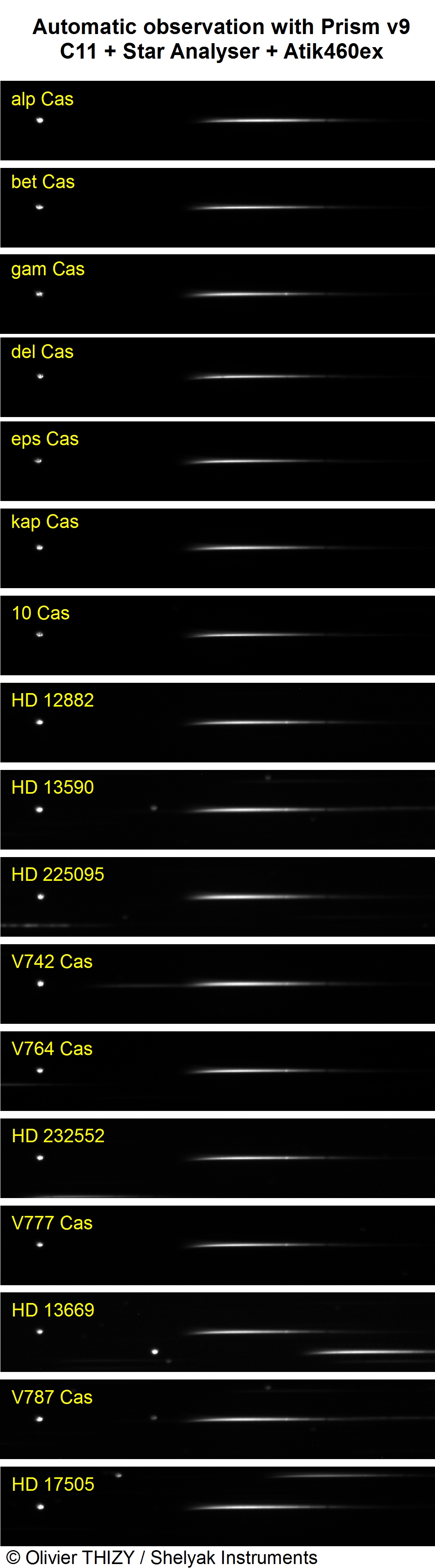 Prism v9 has a very nice feature which allow automatic observation. It is very easy to setup. I started with the bright stars in Cassiopae (in the integrated skymap, just lick on each target and add them on the observing list). I was impressed by the ability to do automatic acquisition in few clics... I recorded my session there: