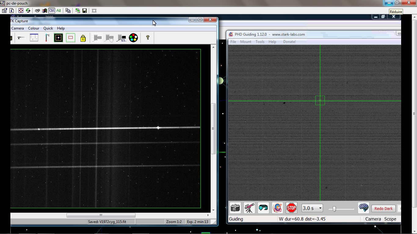 Note the three others stars on the slit producing three other spectra, one is faint, and look at the sky backgroound (half moon) and pollution lines i have over my head.