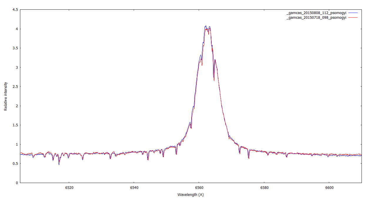 AG Peg, 10 x 3 exposure, I think the middle(!) of the H-alpha is showing a flicker, see this anim gif: