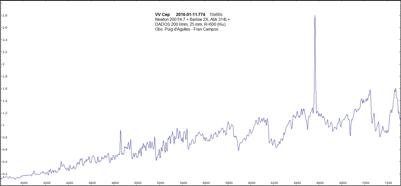 voici mes premiers spectres de variables symbiotiques pleinement traités avec ses étoiles de comparation. Aussi, j'ajoûte un spectre de VV Cep: peut-être elle ne soit pas une variable symbiotique mais je crois que le prochain an deviendra un cible intéressant.