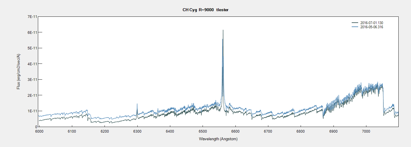 Here are my latest flux calibrated spectra for CH Cyg at Halpha and Hbeta compared to my last results before the recent drop in magnitude.