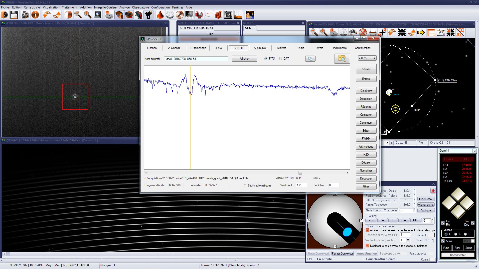 I started with QR Vul and the double emission is there, more intense than in may based on ARASBeAm latest spectrum: