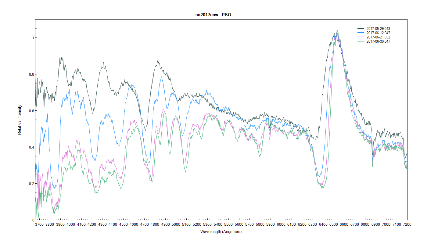 Here is LISA (35 micron slit) spectra of AT2017eaw taken from my high altitude site (2500 meters) on 19Jun17: