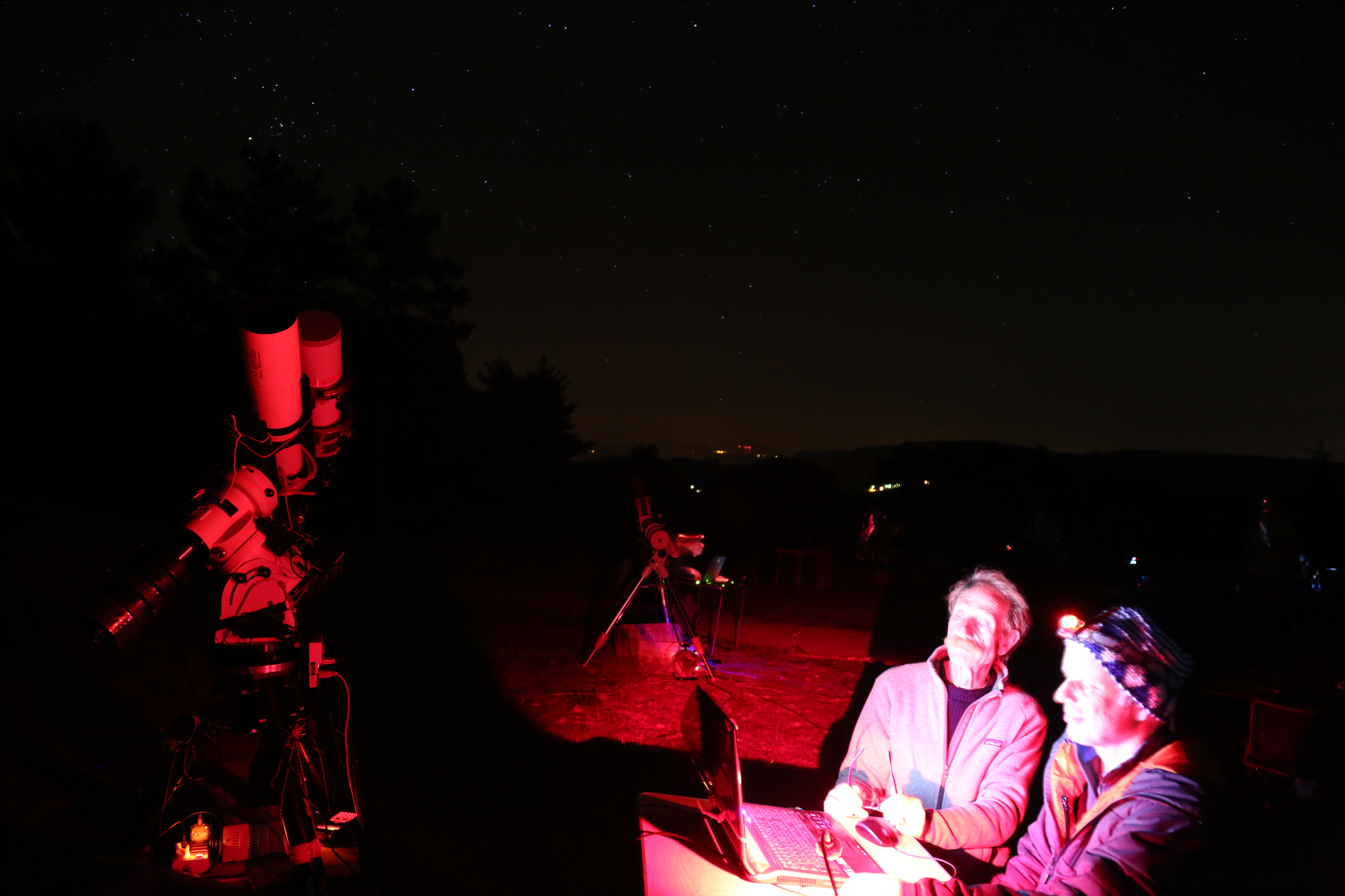 On august 9th, the sky was cloudy so we anticipated Steve's talks. Then, around 10pm the sky cleared up with a very dark night but windy. Several observation have started ok last night....