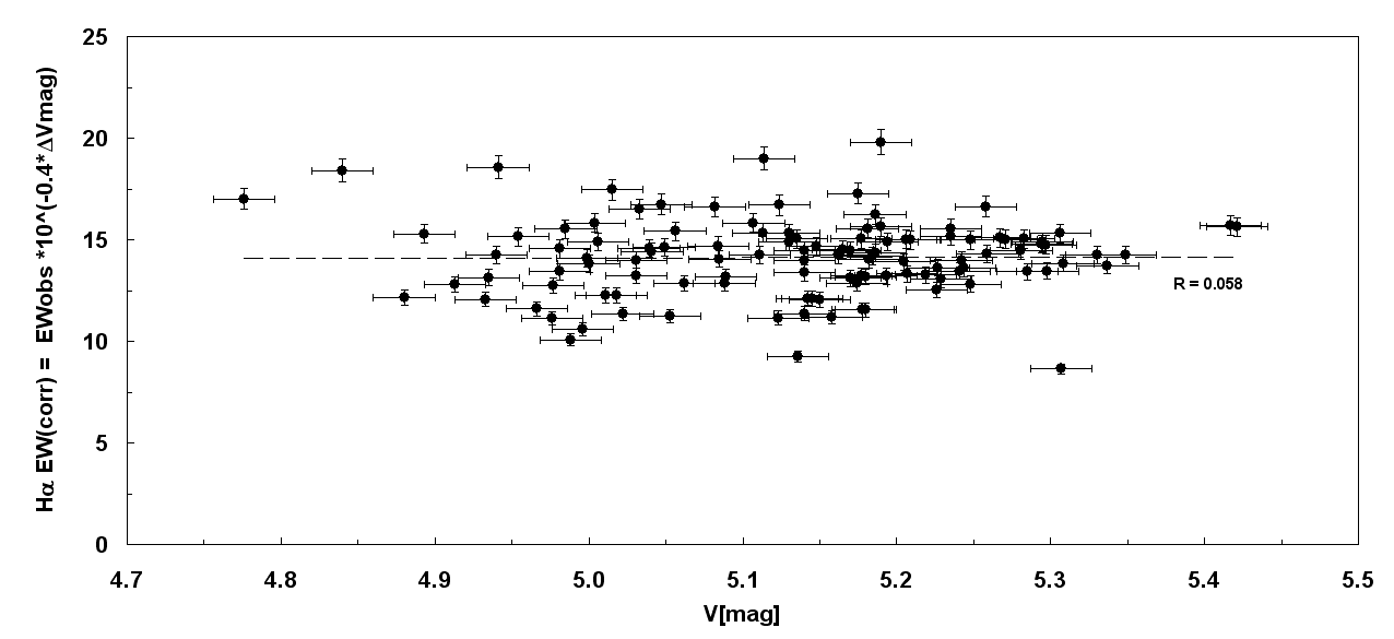 And, Ernst, I'm speaking about low dispersion behaviour in the blue end, not taking into account H-alpha. Both effects could be very anti-correlated, while the star, accretion disk (if any) and other facts must not be correlated in any way. But, this is also fascinating. This will tell more about the nature of the binary, accretion disk, transfer of material. More, than just observe H-alpha alone.