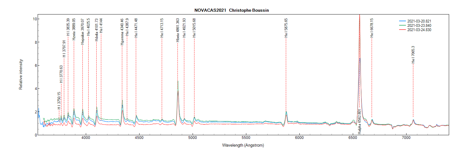 Nova Cas 2021 on March 20th, 23th and 24th 2021 (identification of some lines from PlotSpectra)
