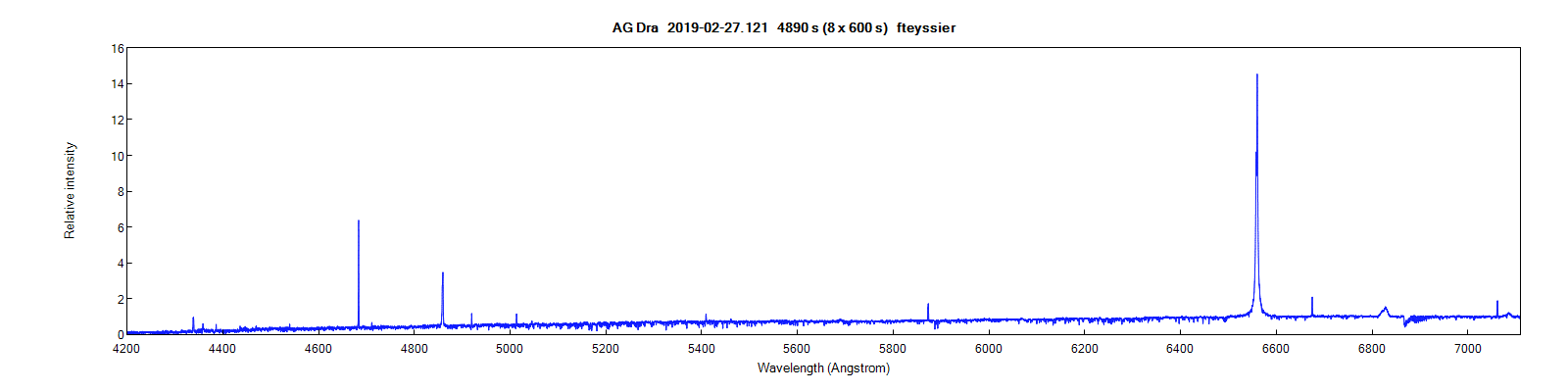 See e.g. Peter's spectra (R = 2500) in the database. http://www.astrosurf.com/aras/Aras_Data ... /AGDra.htm