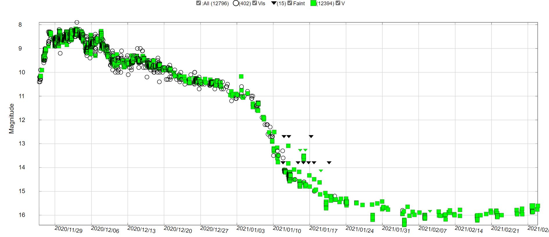 As David noted, the magnitude of the Nova, still close to 16, now appears to be very slowly decreasing...