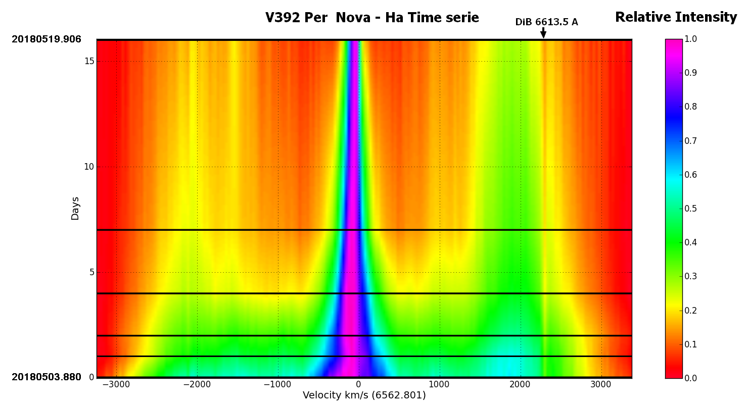 Evolution du spectre de V392 PER du 3 au 26 Mai 2018