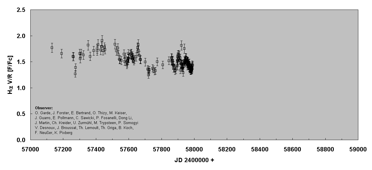 here comes the Halpha V/R plot. Two things confuses me: