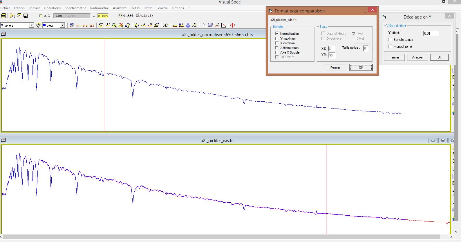 (with Y Offset=0.01 for readability): For the comparison between the profile “hd207260_miles_isis_dered_0p47” that you sent me and my profile “HD207260_Miles_derougie E(B-V)=0p47_normalisee”, there is a visible difference: It seems that with the same E(B-V)=0.47, the development operation performed is not identical.