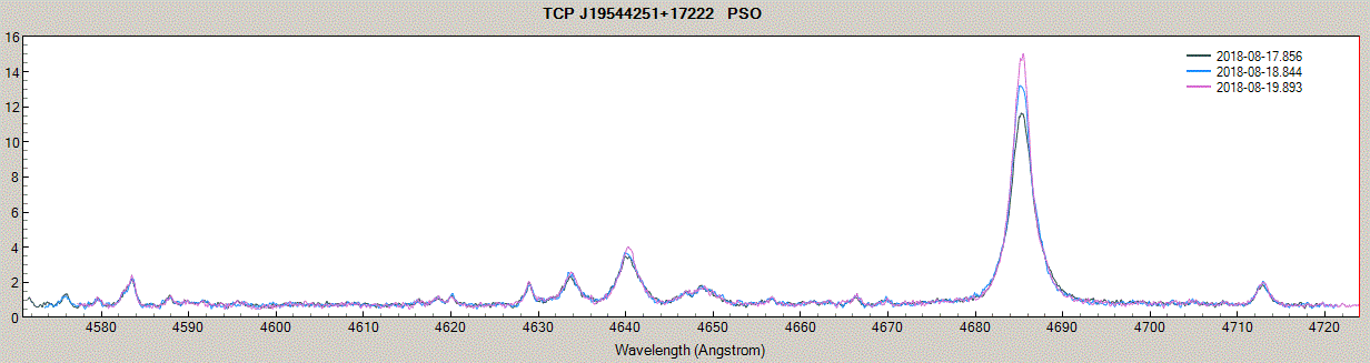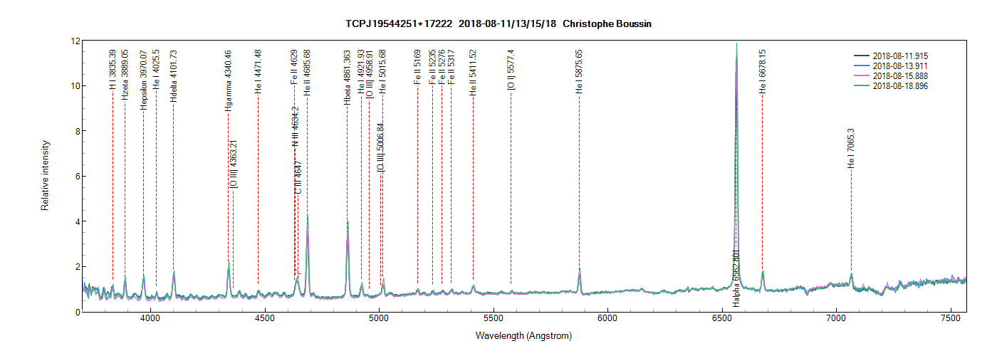 The comparison of the spectra obtained between August 11 and September 1st clearly shows an increase in the relative intensity of the Balmer lines since August 18.