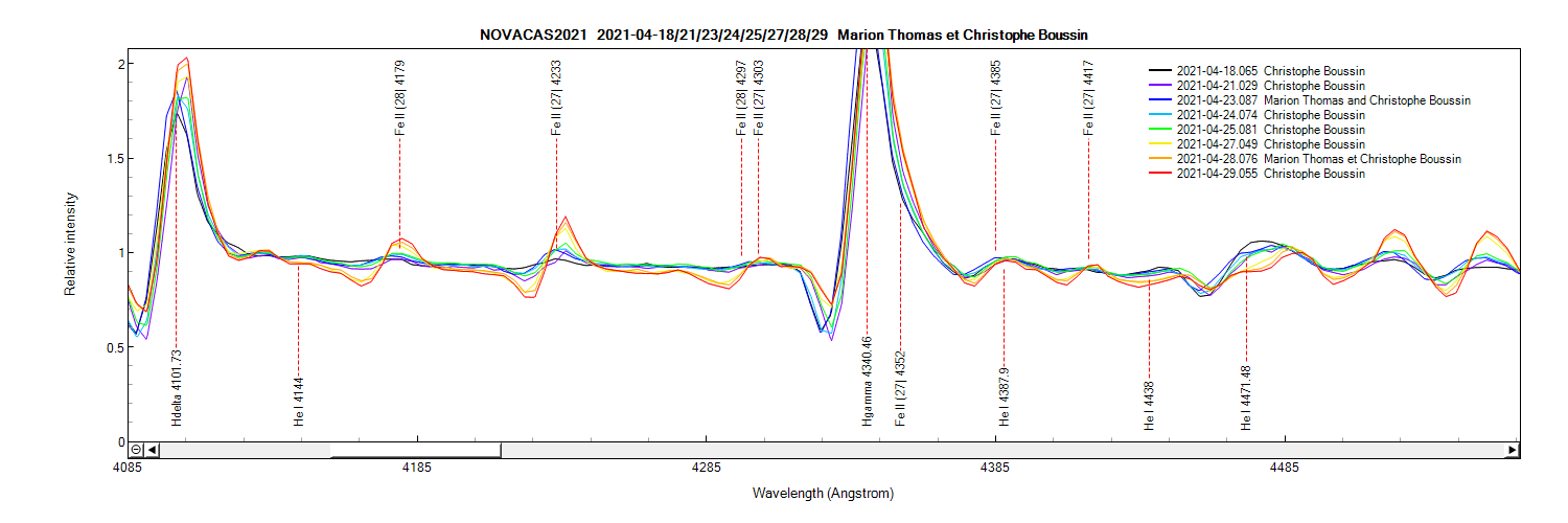 You did a great job with the animation of your spectra, very interesting and very educational which shows so well the evolution of the Balmer, He I and Fe II lines !!