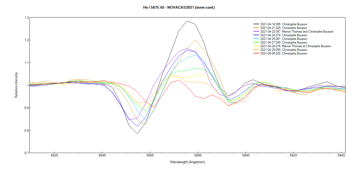 He I line at 5876A on April 18th, 21th, 23th, 24th, 25th, 27th, 28 and 29th 2021(zoom)