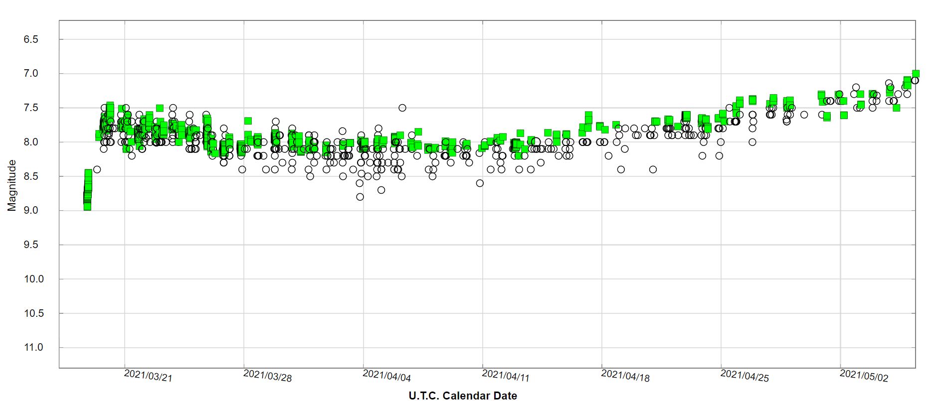 Nova Cas 2021 Vmag evolution to 2021 May 2 from AAVSO database.png (31.29 KiB) Viewed 14589 times