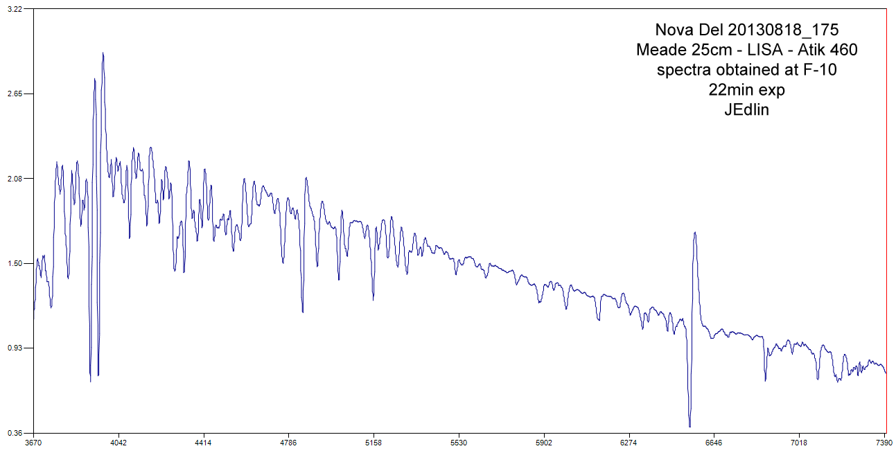 My latest spectra from Aug 17, 2013 with 25cm telescope - LISA - Atik 460ccd. The spectrum has changed significantly over the past several days.
