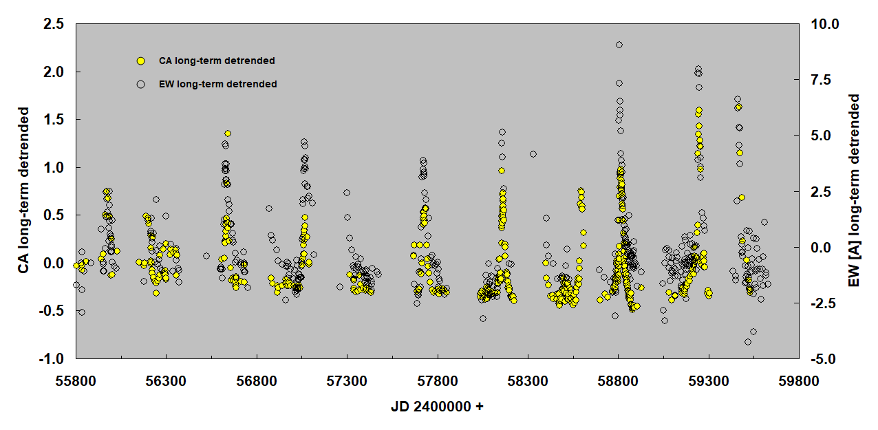 EW and CA have been detrended of the long-term trends of its original monitorings.