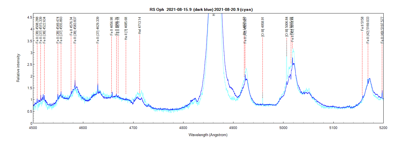 @ Hamish: yes, Peter's spectrum show clearly the growth of [OIII] 5007 on the blue part of HeI/FeII 5016/5018 blend