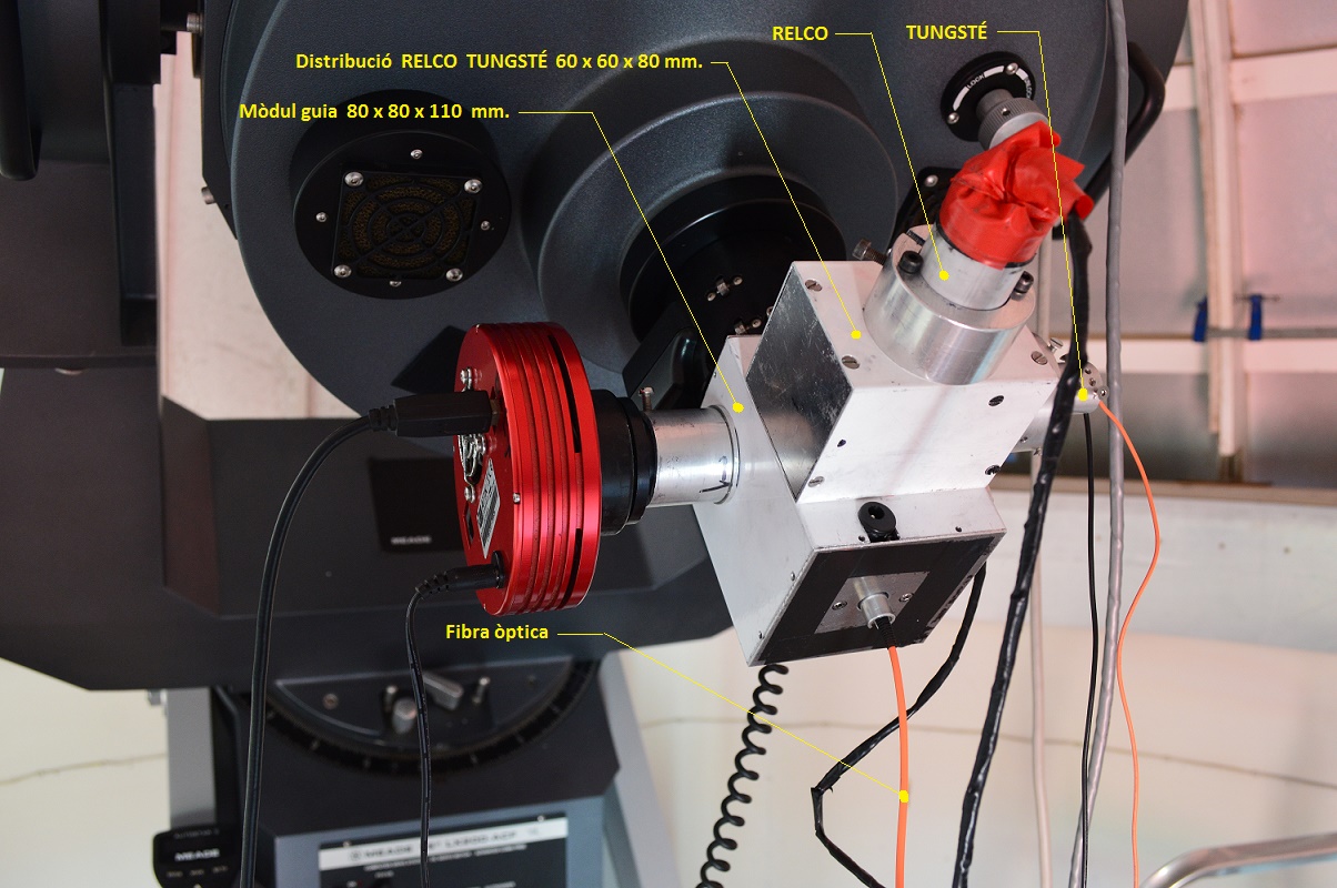 Mon intention est de construire une boîte de suivi qui a le Relco et Tunsgteno et de travailler avec une seule fibre optique, qui va au spectrographe.