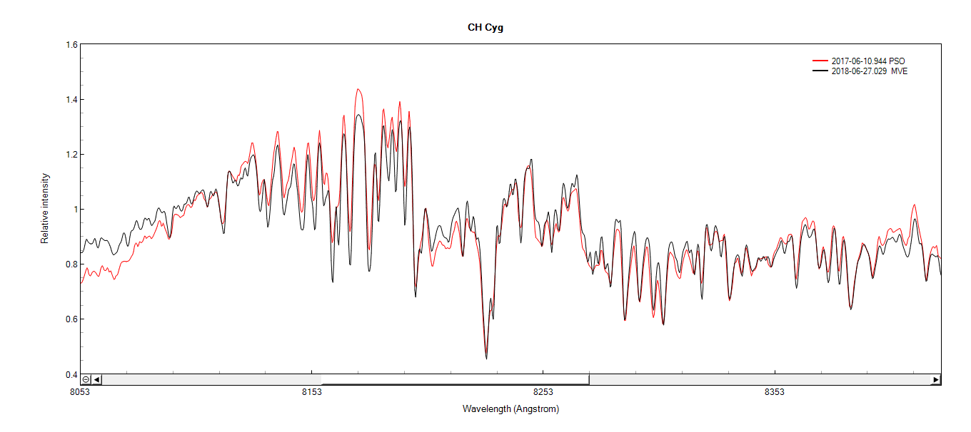 A good reason why we may see no real feature in some of the cases, that the M giant is not behind the moving features, and its +3 mag in this region suppressing the wanted features. So you may want to overexposure it a bit, even when it looks full of SNR, and substract (or divide - in case of absorptions?) a matching M component later.