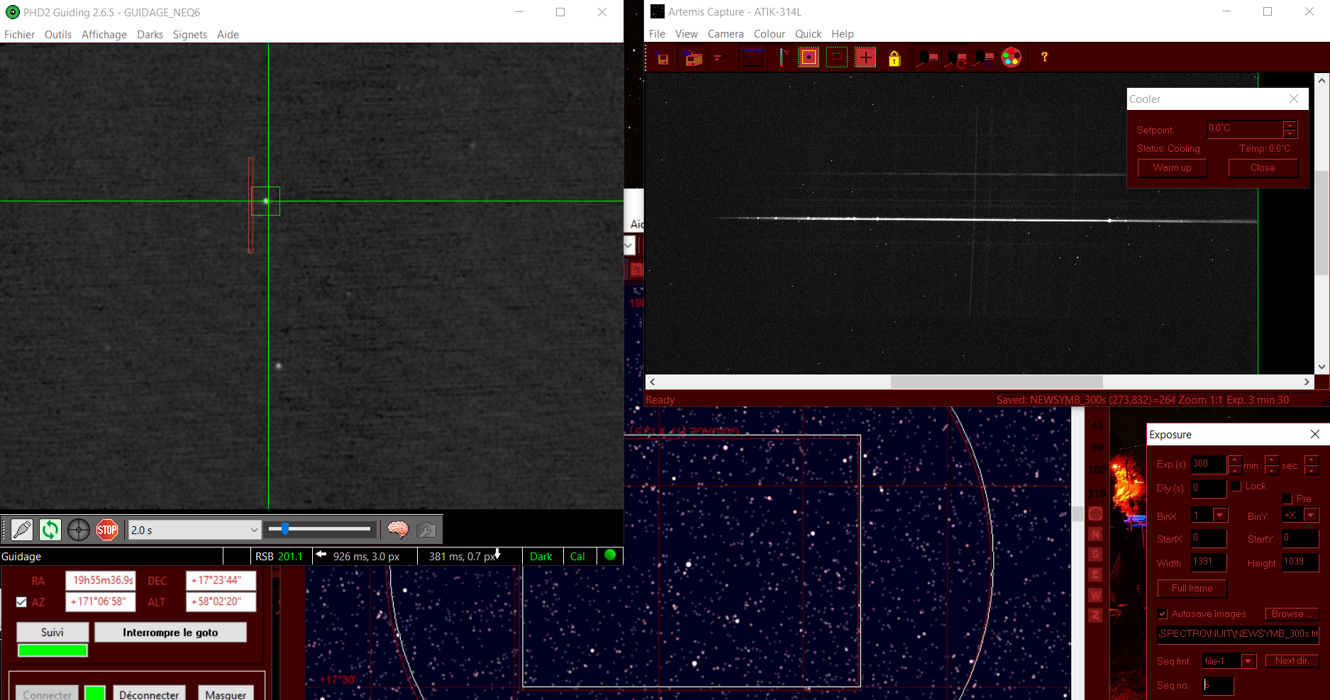 I am also currently following the new symbiotic Vend47 with my Alpy 600 and individual exposure of 300 s (the target is in the slit shown in red with PHD2 Guiding).