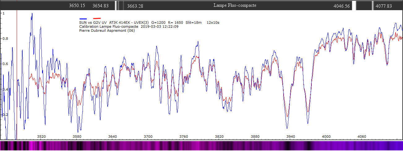 Ce matin, réglages sur table et ensuite spectre solaire proche UV et lampe de calibration Fluo-compacte.