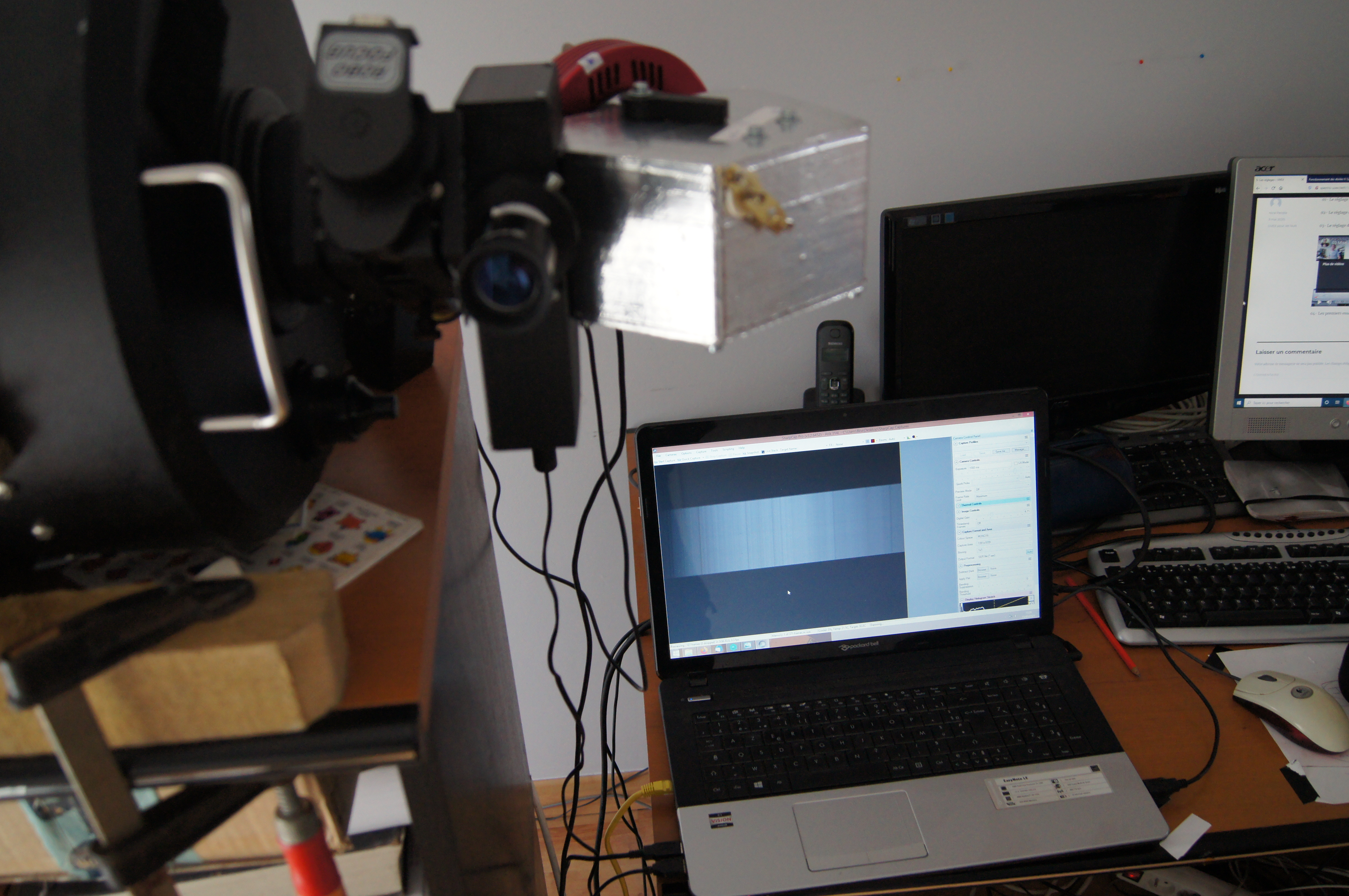 Après avoir trouvé une ATIK 314L+, j'ai fait (après réglages) quelques premiers essais de spectres de l'UVEX3/Calibrex derrière un C11, sur table sur le soleil, en suivant les conseils de ta vidéo concernant la mise au point de la caméra.