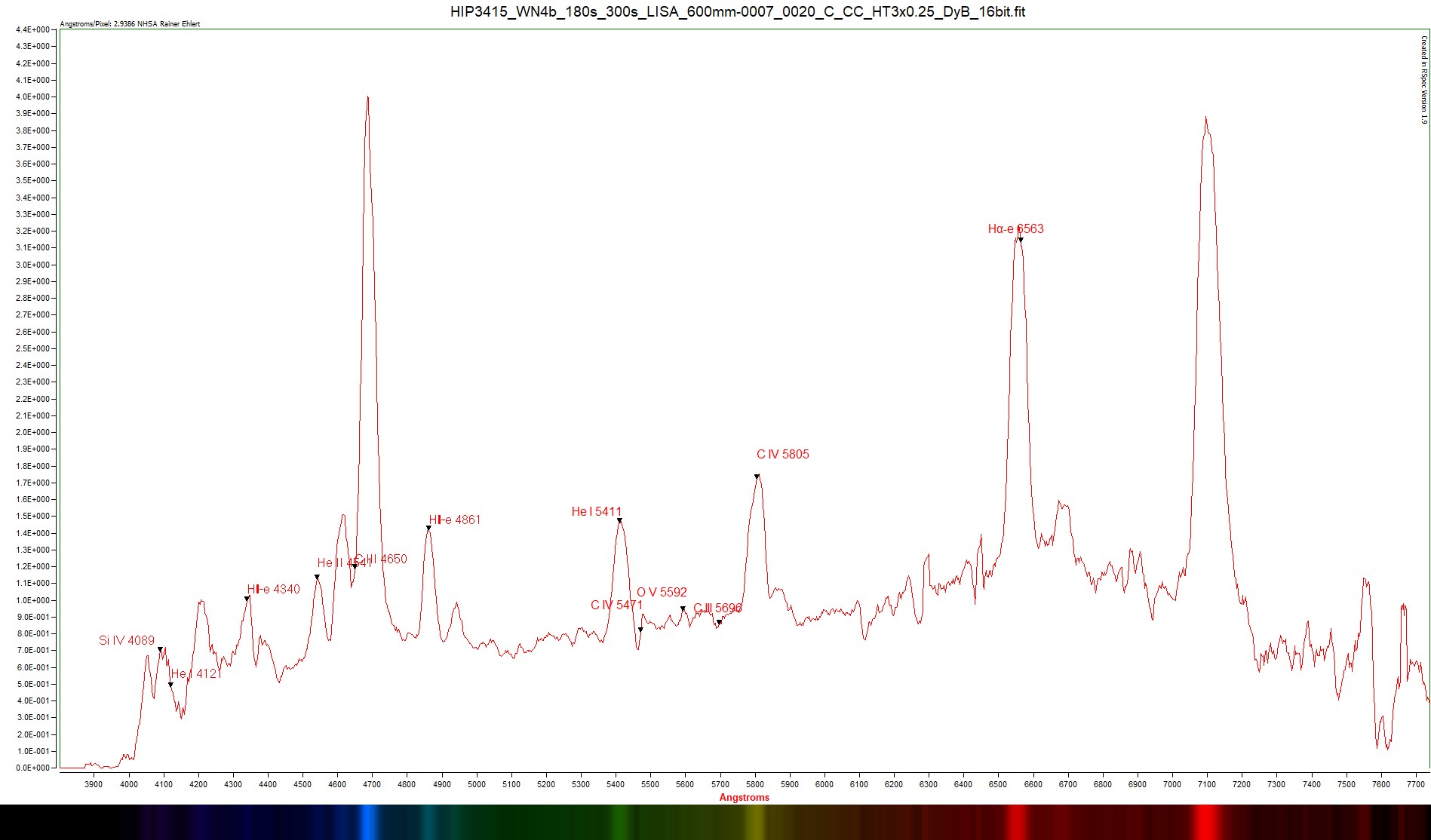 All fit images were processed in PixInsight using DARK and BIAS frames. Instrument response was applied in RSpec as a reference file which I developped acording to Christian Buil paper.