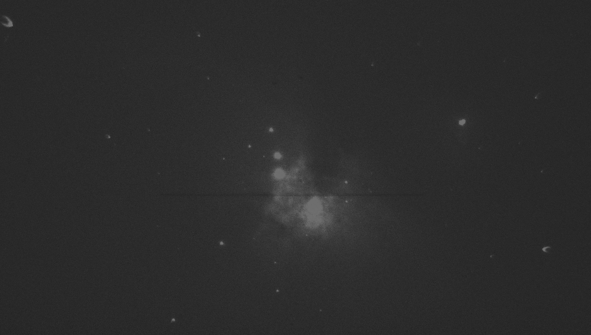Pour vous donner une idée du champ de vision avec mon Alpy 600, voici une image prise de PhD de la nébuleuse d'orion. Newtonian de 200 mm f/4, 800 mm avec une fente de 10 µm. J'ai aussi le 178 MM, mais je pense que le 290 MM est plus sensible. La plupart du temps, je guide avec une étoile hors de la fente.