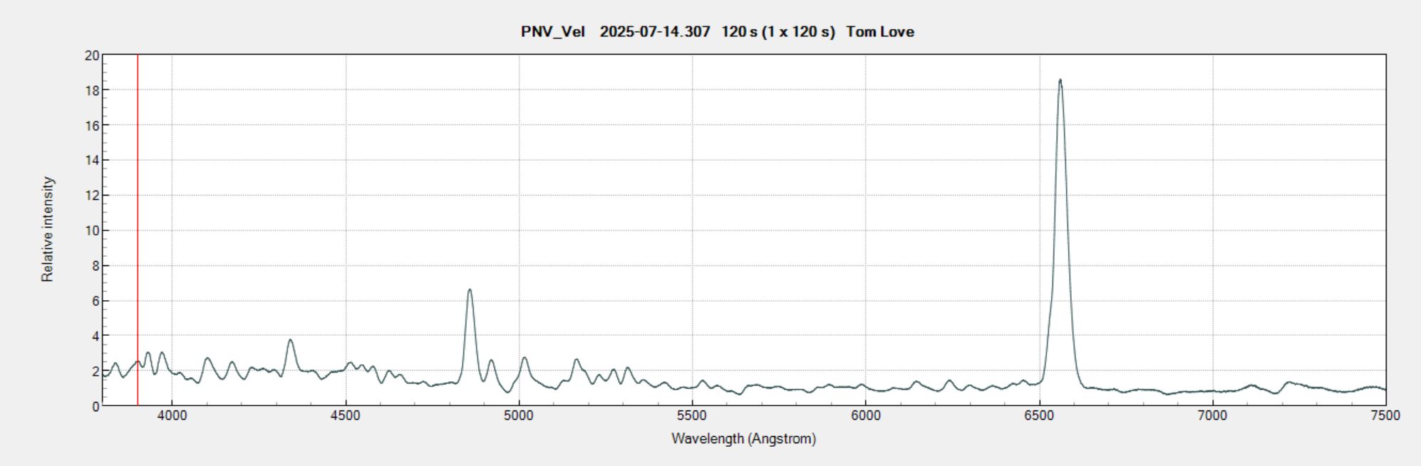 This evening I used an Alpy for a spectrum of the recent nova in Vela. I fitted it with a 35 micron slit to maintain efficiency at longer focal length in typical seeing conditions, but the tradeoff is that the resolution drops to around R~450. Which is still good enough for transient classification and monitoring. The task over the coming months will be to explore the magnitude limit of the setup.