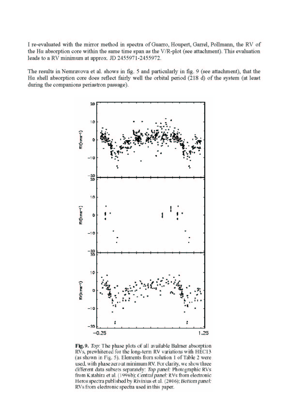 Corresponding to my attached observation notes (for J. Nemravova, Hvar conference, July 2012), we could confirm the anti-correlated behavior of V/R and RV. This behavior of the star has been not observed of the professionals so far.