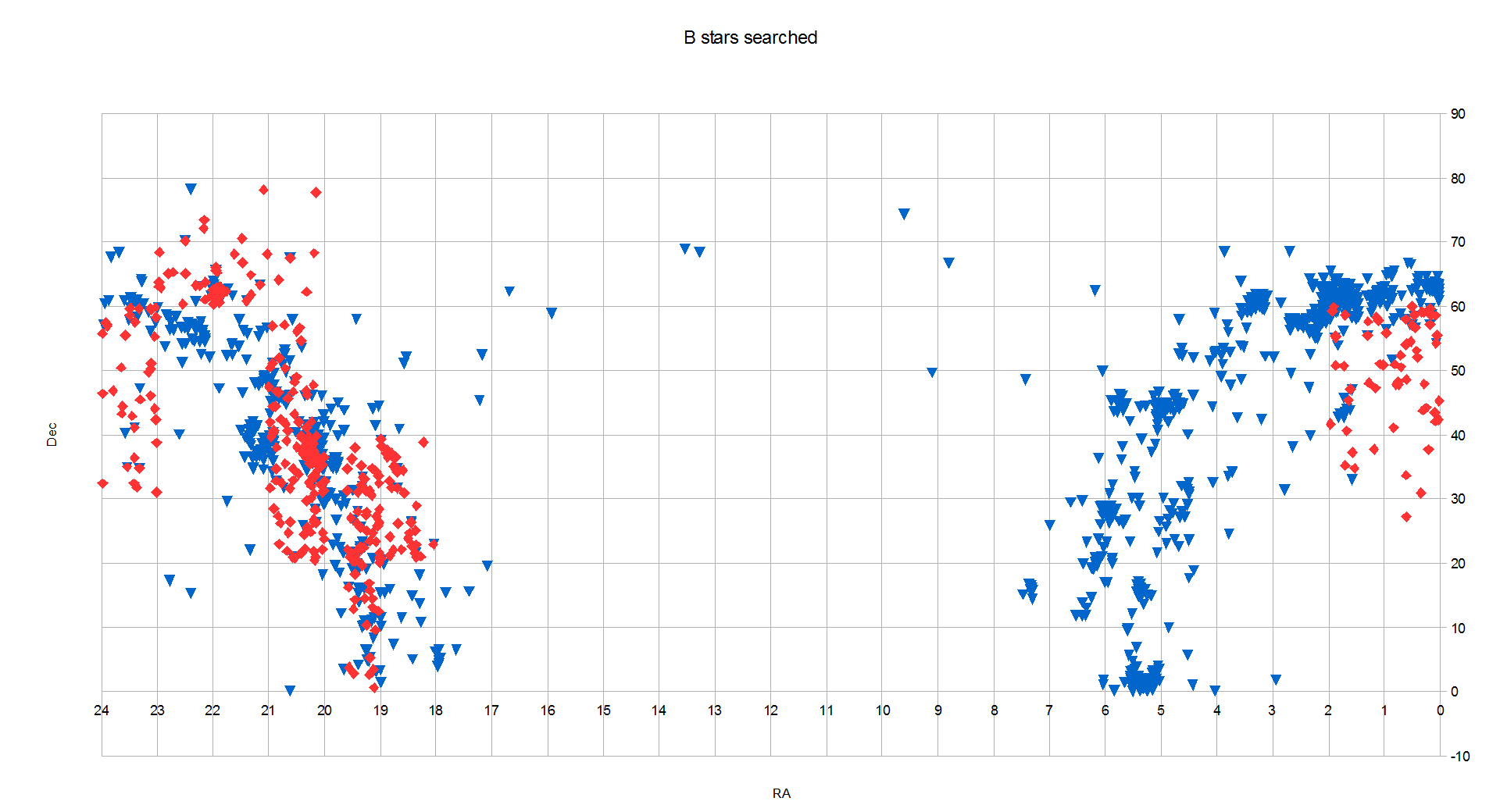 I have added Tierry's 980 stars to my 380 and so we now have a "global" picture. The colour code is Blue for Tierry (obvious reasons?) and red for me.