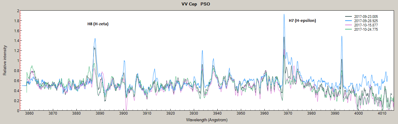 Here are my latest Ha and CaK spectra for VV Cep processed in Isis V5.91 taken with LhiresIII with 2400 l/mm grating & 35 micron slit with Planewave CDK17 reflecting telescope: