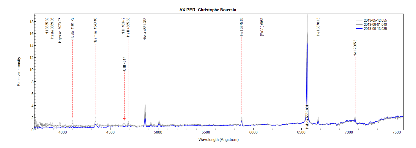 - AX Per on June 21th, June 26th and July 5th, 2019 (identification of some lines from PlotSpectra)