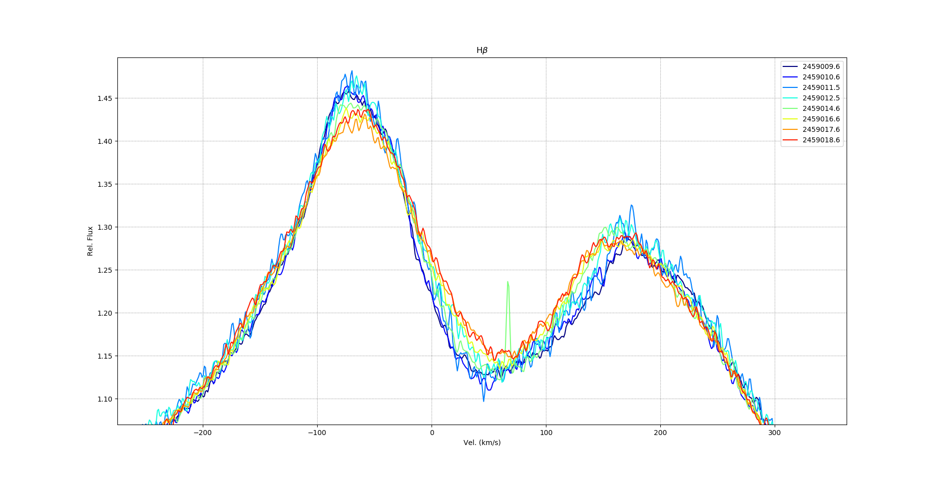 This may come as no surprise to anyone who has been studying Pi Aqr for a while, but over the last 10 days it's been interesting to watch the Hydrogen alpha and beta lines shift their peaks. Just thought it was neat to see this (presumably) rotating disk structure in real time over just ~1/10th of the orbit, and will be really nice when quantitative measurements like peak separation and V/R are made.