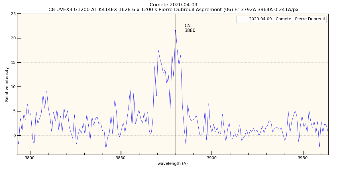 Merci Jean-Pierre pour l'identification. En fait la raie 3880 est large mais que tu CN !