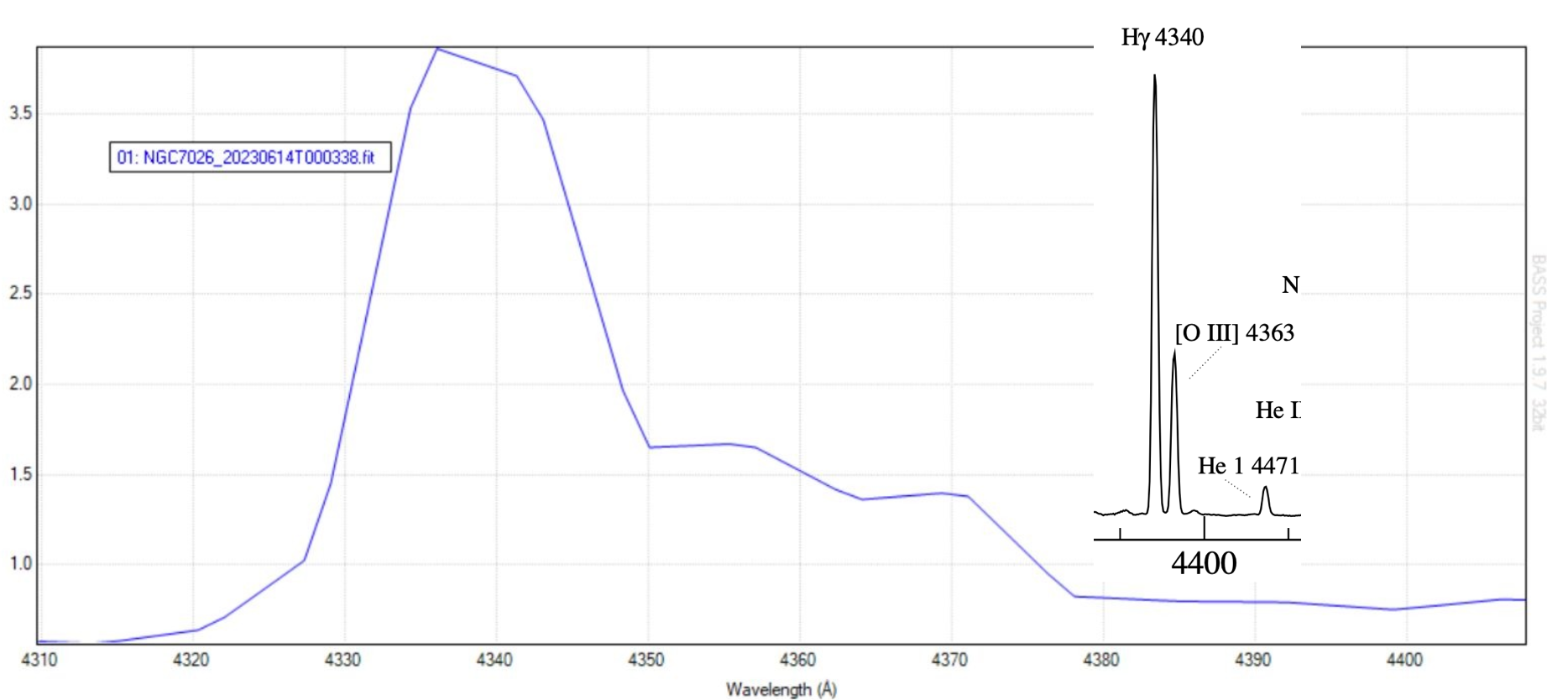 After many weeks of bad weather during Spring in Switzerland, we have now recorded several spectra of three PN. NGC6543 (famous Cat's Eye), NGC6210 and the much fainter NGC7026. The student then used Demetra SW for processing the spectra that all worked well with plausible results. We also took reference spectra of nearby MILES stars.