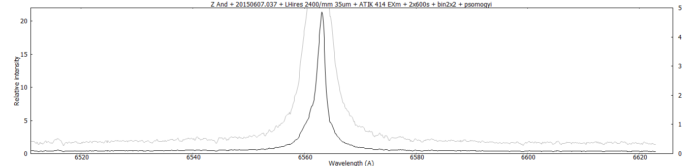 Good snr, narrow and extreme strong H-alpha (increased a lot since last year).