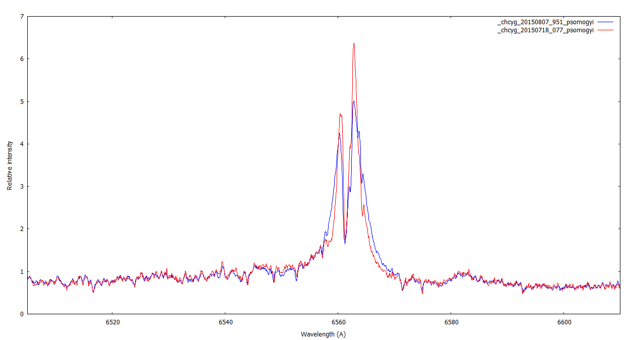 AG Peg, 10 x 3 exposure, I think the middle(!) of the H-alpha is showing a flicker, see this anim gif: