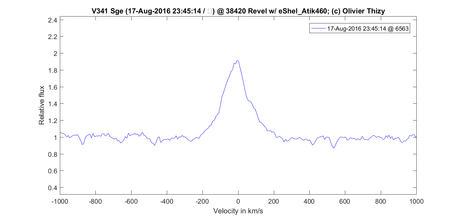 Hi all, My spectrum from last night shows V341 Sge in an active state. The last spectra in BeSS (July 2015) shows Halpha in absorption.