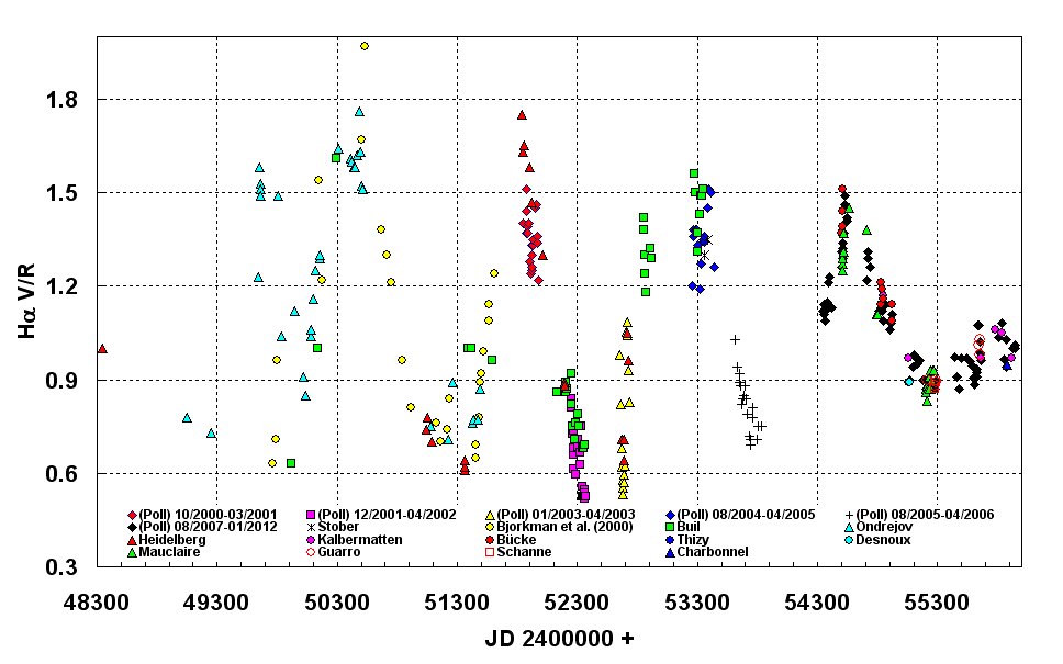 The decrease of emitting envelope should lead to termination of pronounced long term variations.The pronounced V/R variations have stopped with decrease of emission. As one can see in the V/R plot, expected maximum at the end of the plot seems to be missing (see attached figures).